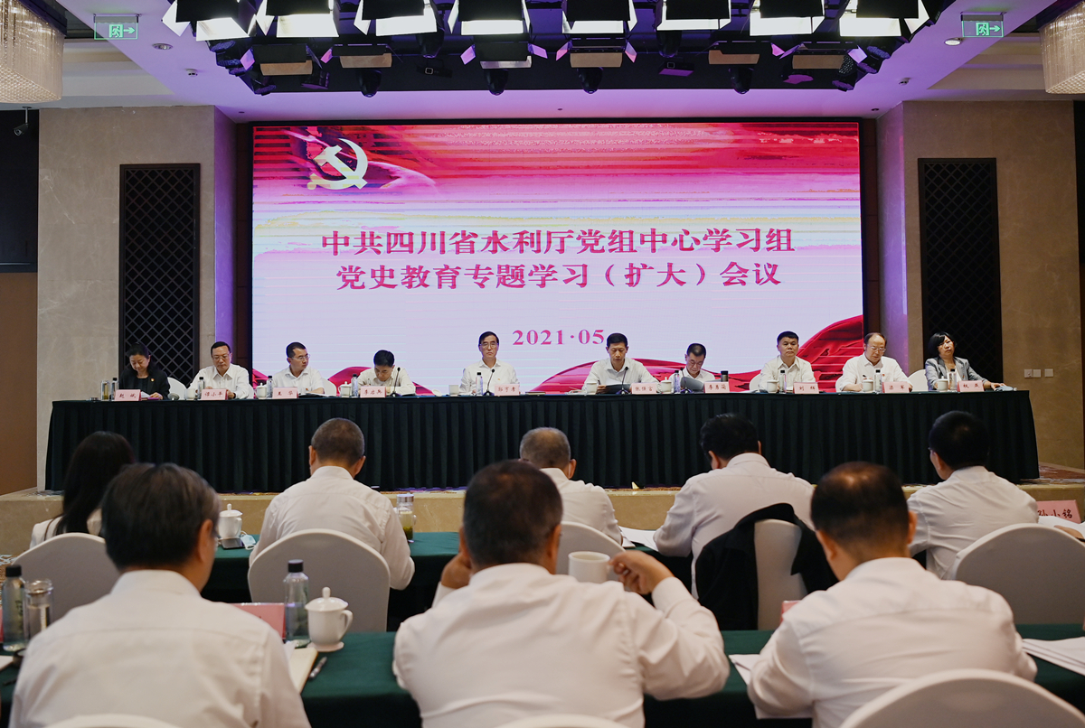 為深入推進全省水利系統(tǒng)黨史學習教育活動,承前啟后、繼往開來,切實把水利廳黨組前期加強黨史理論學習教育,深入調(diào)查研究和廣泛聽取各方意見建議的成果轉化為助推四川水利高質(zhì)量發(fā)展的不懈動力。5月13日,水利廳黨組中心學習組黨史教育專題學習(擴大)會在成都召開。會議在認真聽取黨史教育專家劉偉教授的黨史教育輔導課后,深入分析研判新時期新階段四川水利改革發(fā)展面臨的新形勢新機遇和新挑戰(zhàn),提出了新時代實現(xiàn)四川水利高質(zhì)量發(fā)展的“3226”總體工作思路。水利廳黨組書記、廳長郭亨孝主持大會并作主題報告和總結講話。廳黨組成員、副廳長張強言解讀《四川省“十四五”水安全保障規(guī)劃報告(匯報稿)》。李啟兵、李勇藺、王華、劉輝、譚小平、梁軍、趙斌、權燕等廳黨組中心學習組成員及在職廳級干部出席會議。