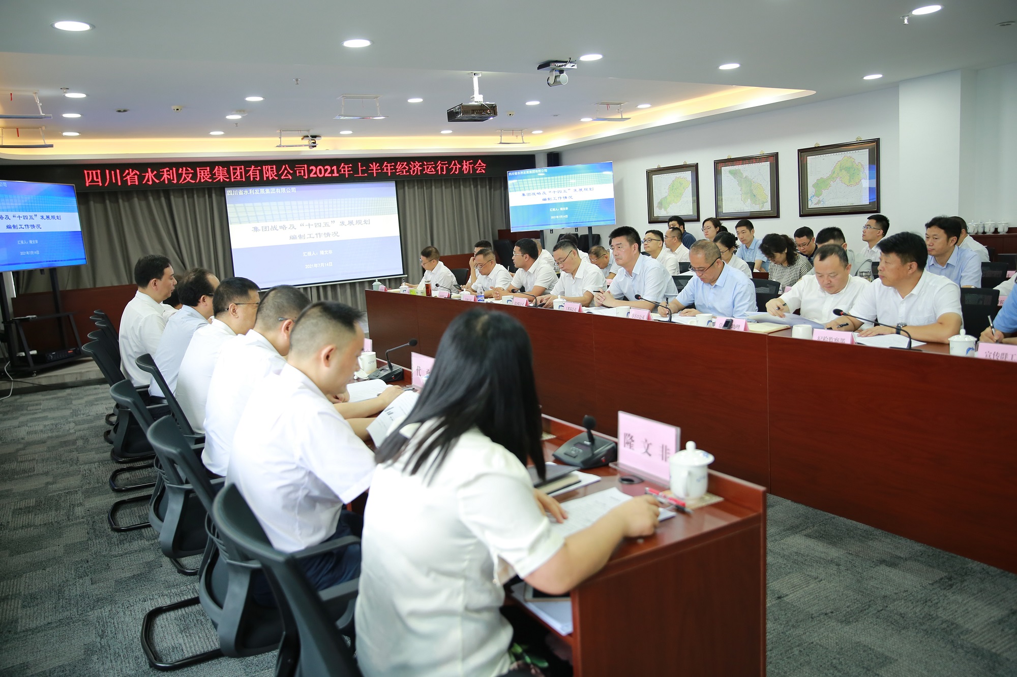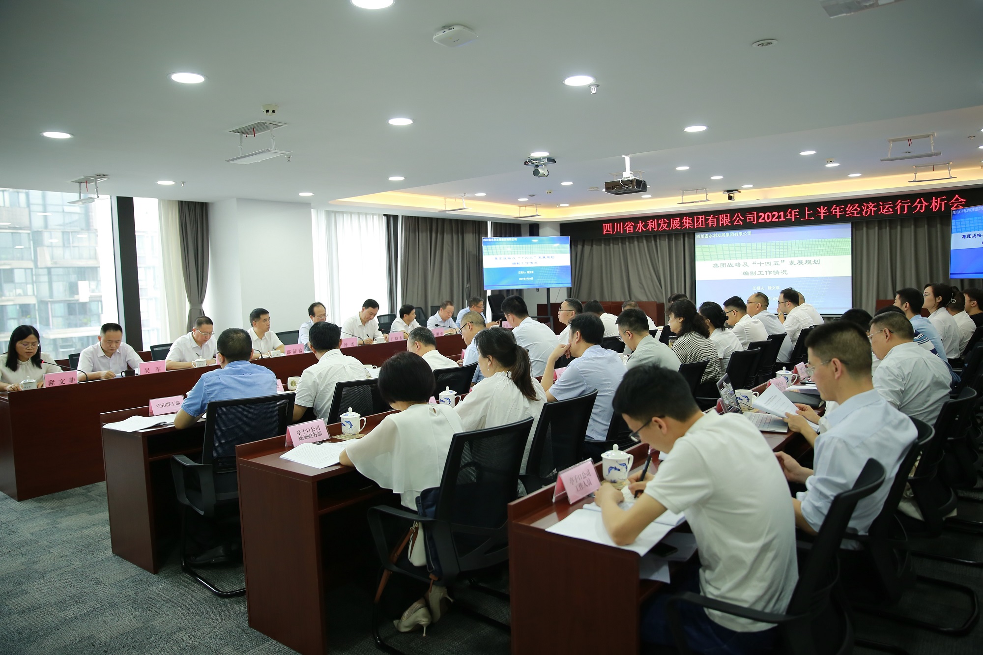 2021年7月14日,四川省水利發(fā)展集團有限公司召開2021年上半年經(jīng)濟運行分析會,總結(jié)分析2021年上半年經(jīng)濟運行情況,通報“十四五”規(guī)劃編制工作情況,研究部署下半年經(jīng)營工作。集團黨委書記、董事長鐘杰主持會議,集團領(lǐng)導班子成員尹曉東、鄔清富、王剛強、代勇、黃永沾、吳軍、羅國書、隆文非出席會議,集團總部各部門負責人和下屬企業(yè)主要負責人、及部門負責人參加會議。