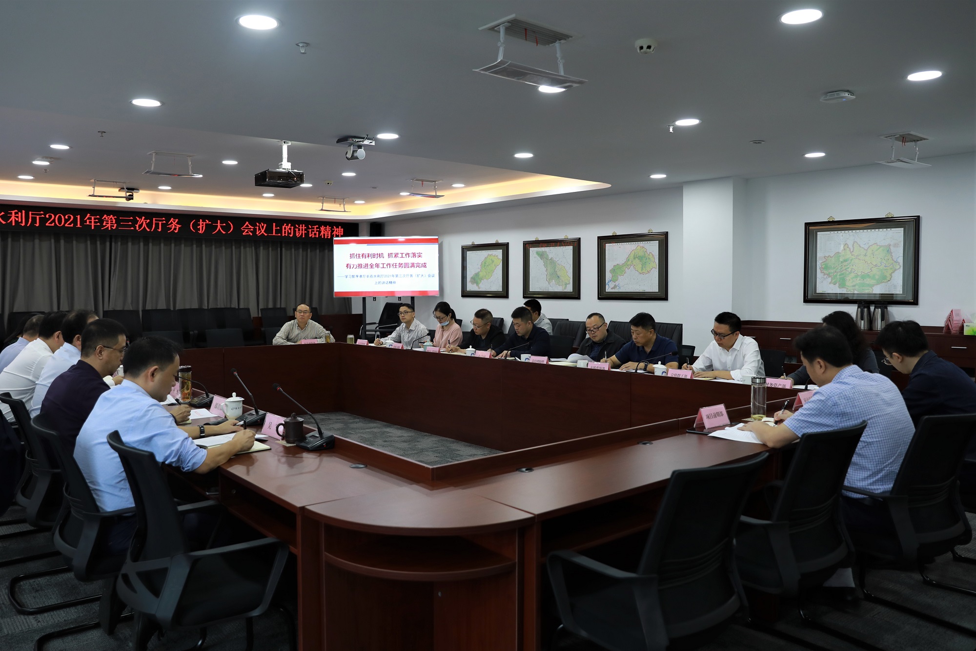 9月15日,水利廳召開(kāi)2021年第三次廳務(wù)(擴(kuò)大)會(huì)議,郭亨孝廳長(zhǎng)以“抓住有利時(shí)機(jī) 抓緊工作落實(shí) 有力推進(jìn)全年工作任務(wù)圓滿完成”為主題,重點(diǎn)回顧了今年以來(lái)廳黨組帶領(lǐng)全廳以“組合拳”形式推進(jìn)的十項(xiàng)工作,全面梳理了落實(shí)“3226”工作思路20個(gè)方面落實(shí)落細(xì)的具體工作思路和方法,同時(shí)對(duì)推動(dòng)第四季度工作適度轉(zhuǎn)段提出了要求。郭廳長(zhǎng)的講話多處提及水發(fā)集團(tuán),對(duì)集團(tuán)當(dāng)前和今后一個(gè)階段的工作具有十分重要的指導(dǎo)意義。
