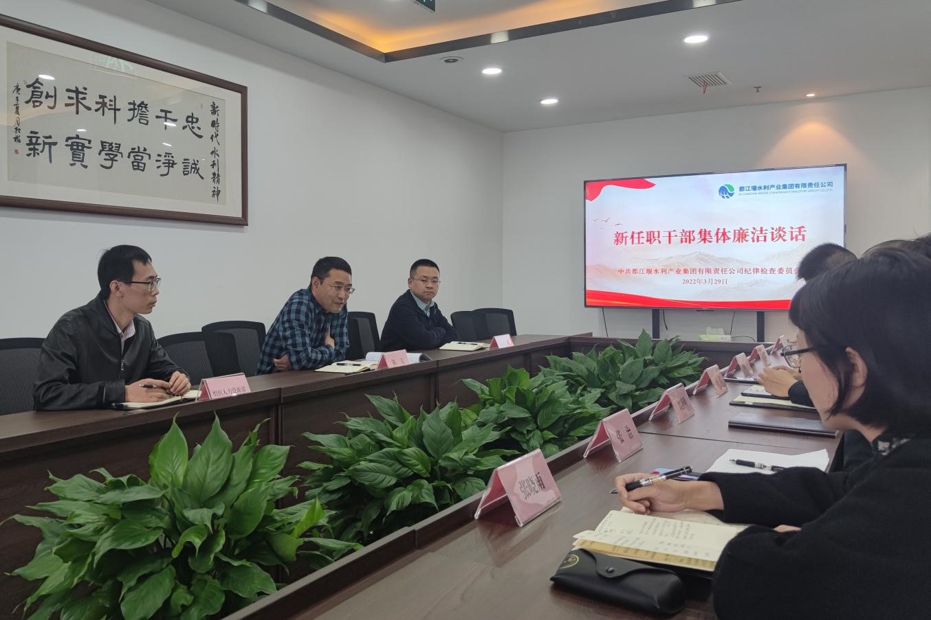 2022年3月29日,產(chǎn)業(yè)公司組織召開新任職干部集體廉潔談話會,公司黨委專職副書記、紀委書記陳雷主持會議并講話,紀檢監(jiān)察部、組織人力資源部和近期新調(diào)整、任職的7名中層干部參加會議。