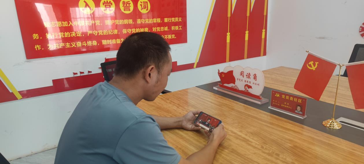 在向家壩灌區(qū)貓兒沱臨時(shí)黨支部黨員活動(dòng)室,黨員們?yōu)閳?bào)告中多次描述四川水利建設(shè)感到鼓舞,表示將進(jìn)一步運(yùn)用好科技元素,確保過江隧洞安全順利施工。