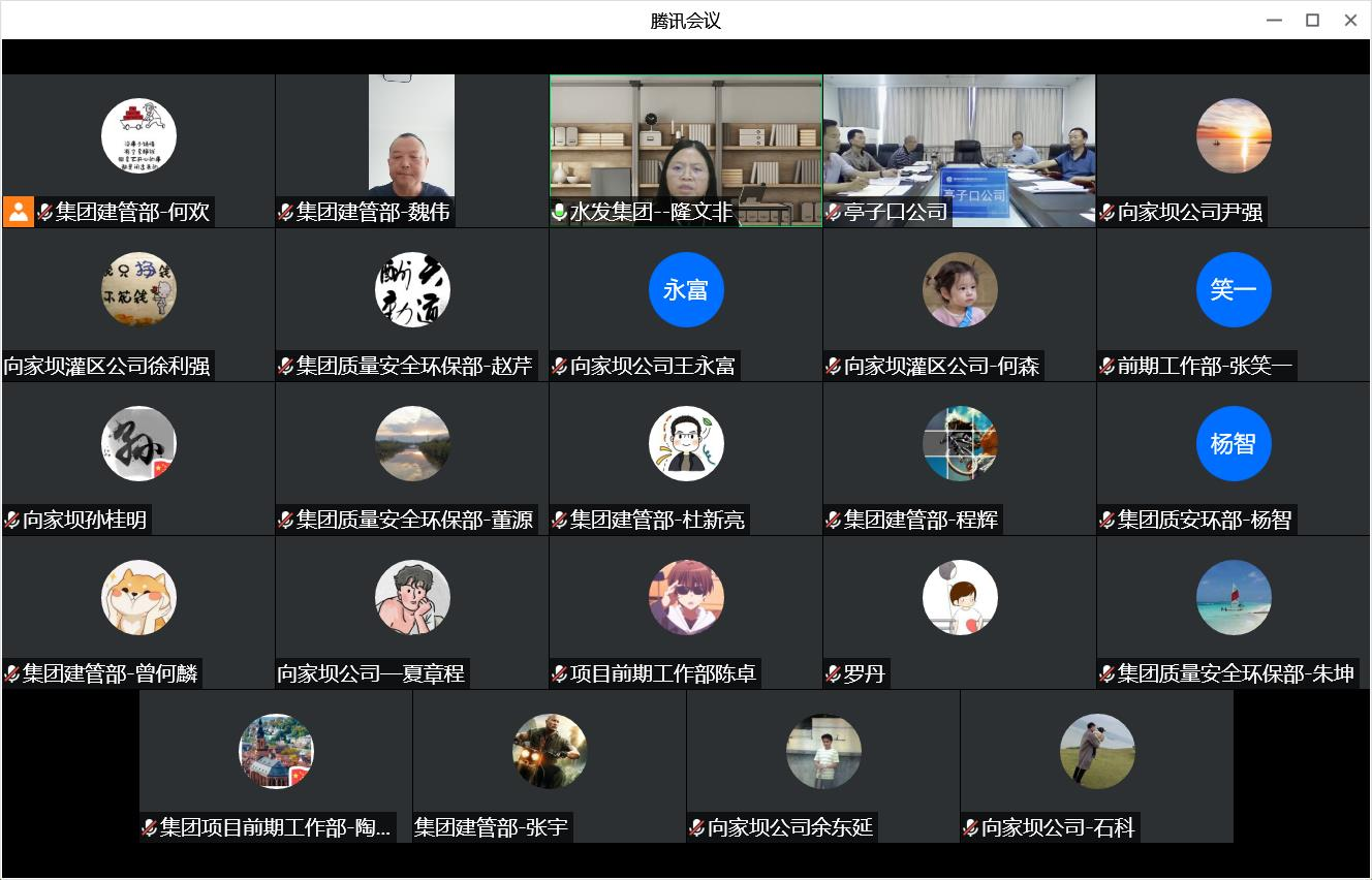 副總經(jīng)理隆文非參加會議并講話,向家壩公司、亭子口公司有關(guān)負(fù)責(zé)人及相關(guān)同志,集團(tuán)建設(shè)管理部、質(zhì)量安全環(huán)保部、前期工作部有關(guān)負(fù)責(zé)人及相關(guān)同志,全體人員通過視頻連線方式參加會議。