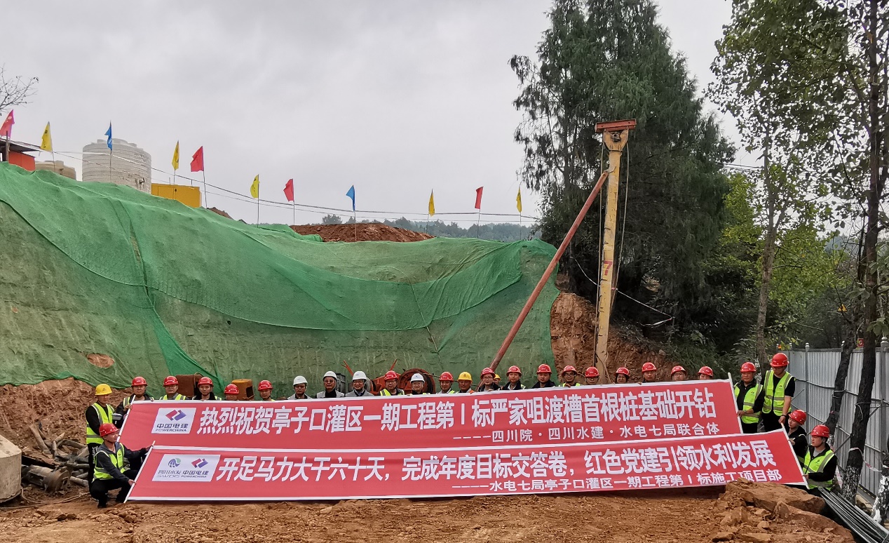 11月5日,由設(shè)計公司-建設(shè)公司-水電七局聯(lián)合體亭子口灌區(qū)一期工程設(shè)計-采購-施工總承包(EPC)第I標(biāo)項(xiàng)目部承建的嚴(yán)家咀渡槽首根樁基順利開工,這是繼亭子口灌區(qū)一期工程Ⅲ標(biāo)段桐子壩渡槽后又一標(biāo)志性工程建設(shè)。根據(jù)該部位地質(zhì)情況,樁基采用沖擊方式鉆進(jìn)。