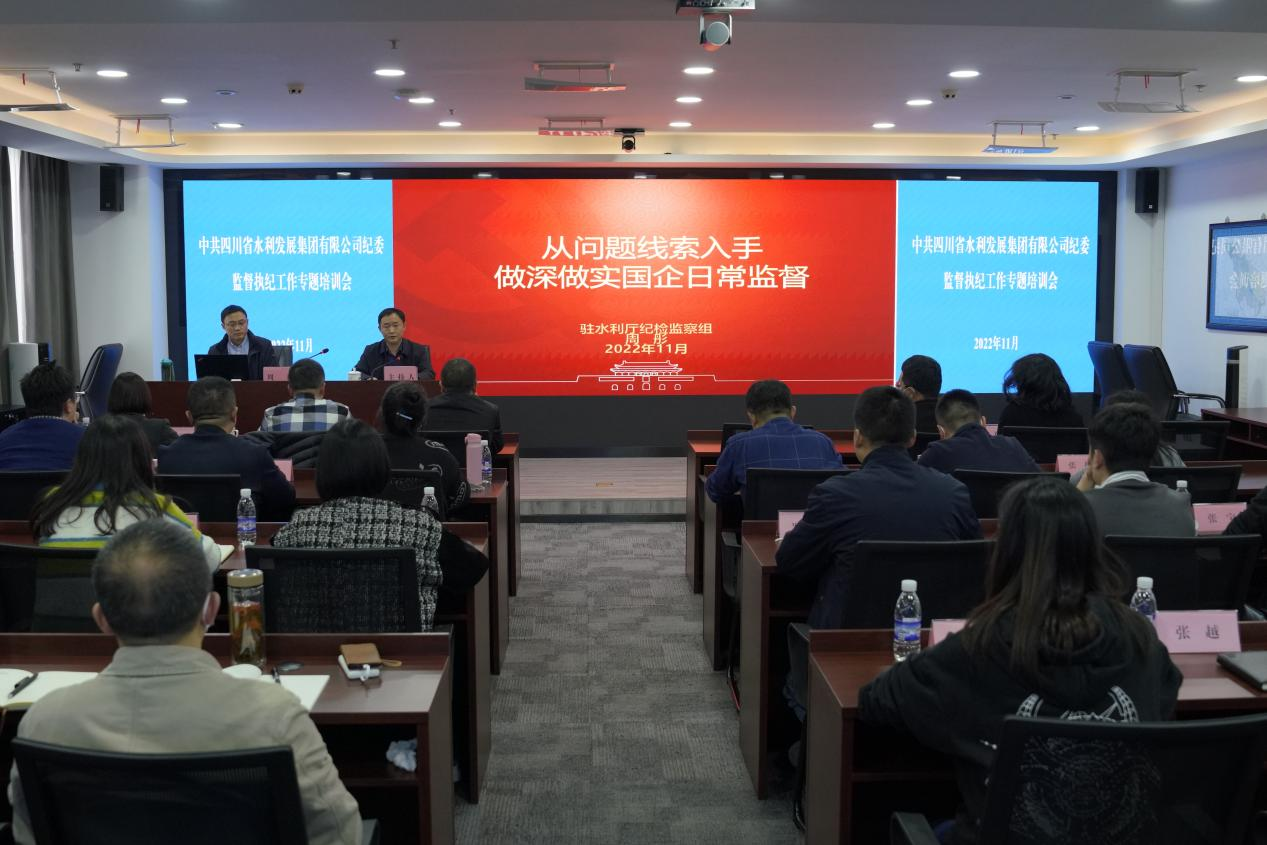集團(tuán)黨委委員、紀(jì)委書記吳軍主持培訓(xùn)并作了開班講話,對(duì)全體參訓(xùn)人員提出了學(xué)習(xí)要求。本次培訓(xùn)特邀省紀(jì)委監(jiān)委駐水利廳紀(jì)檢監(jiān)察組副組長(zhǎng)周彤就《從問題線索入手做深做實(shí)國(guó)企日常監(jiān)督》蒞臨授課。