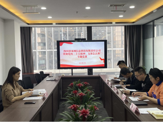 1月31日,投資公司下屬水網(wǎng)科技公司黨支部為深入貫徹落實黨的二十大會議精神,組織專題黨課教育活動,結合經(jīng)營發(fā)展實際,開年即謀劃公司全年重點工作。黨支部書記馬璐以《貫徹黨的二十大精神,支部怎么做?》為主題,圍繞黨的二十大報告和2023年全國水利工作會議的精神為公司全體黨員職工講授了專題黨課。