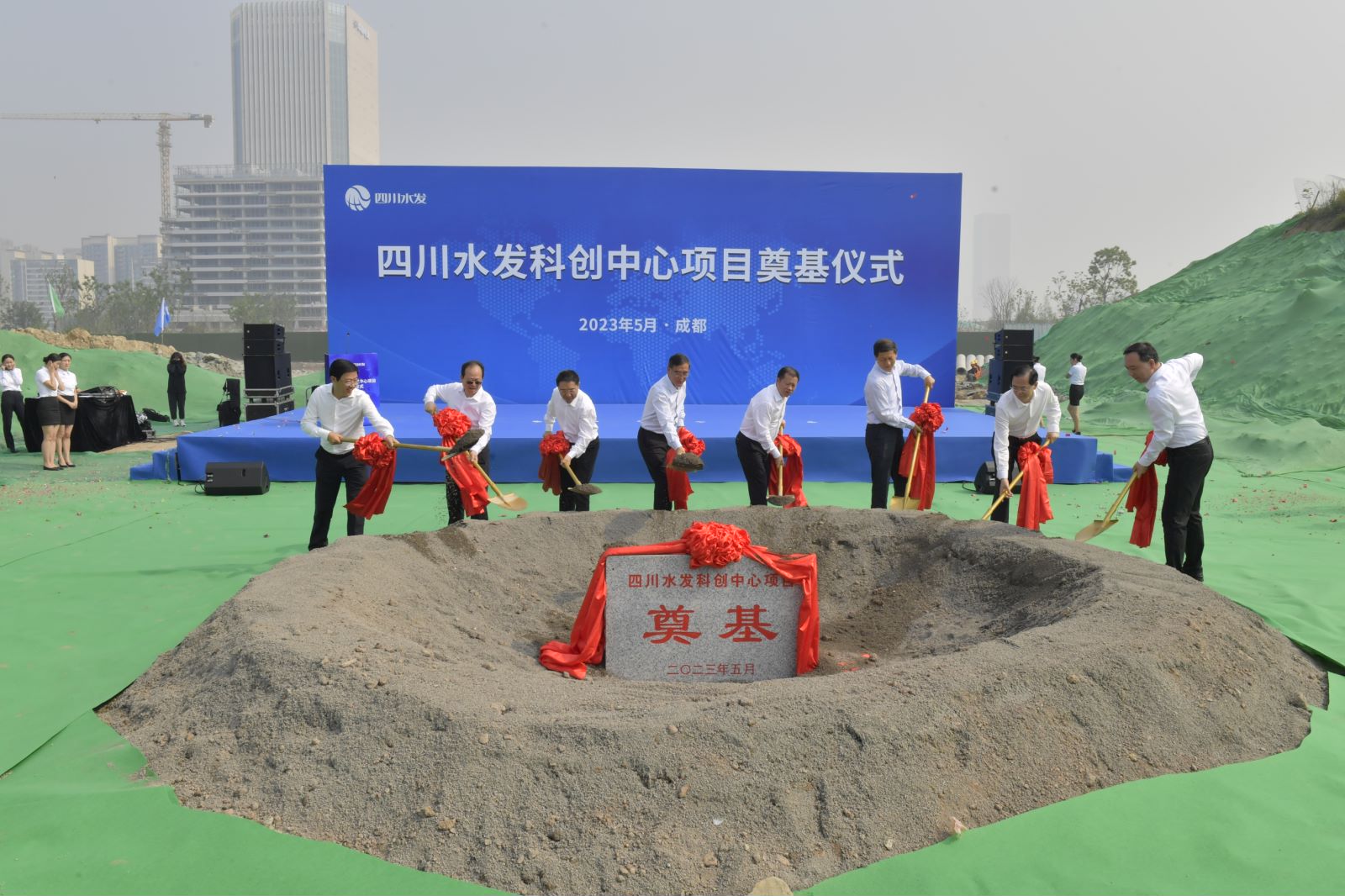 5月16日,四川水發(fā)科創(chuàng)中心在天府新區(qū)總部商務(wù)區(qū)隆重舉行奠基儀式。水利廳黨組書記、廳長郭亨孝出席儀式并宣布項目正式開工。水利廳黨組成員、副廳長張強言,天府新區(qū)黨工委書記周先毅,天府新區(qū)黨工委副書記、管委會主任陳歷章,水發(fā)集團黨委書記、董事長鐘杰,中國五冶集團黨委書記、董事長朱永繁,水發(fā)集團黨委副書記、總經(jīng)理向仕春參加奠基活動。水發(fā)集團黨委副書記、副總經(jīng)理、水發(fā)投資公司黨委書記、董事長尹曉東主持奠基儀式。