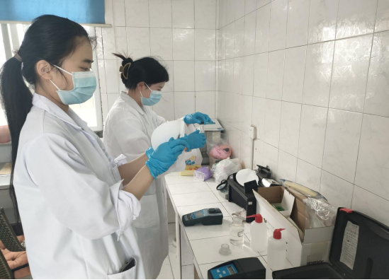 水質(zhì)檢測(cè)人員對(duì)原水水質(zhì)和出廠水水質(zhì)進(jìn)行檢測(cè)