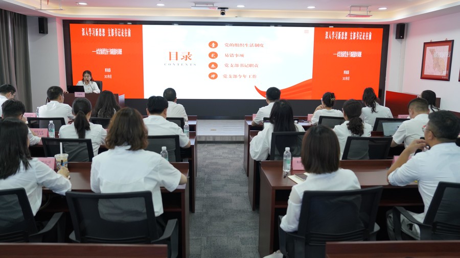 在交流學習會上,集團黨委工作部楊鈞茜同志以參加主題教育推動思想和工作技能大提升為引子,給大家講解了基層黨建業(yè)務知識以及黨支部如何高質高效開展“三會一課”,基層黨支部如何推動黨的創(chuàng)新理論學習教育走深走實等工作技巧和心得體會。會上,還傳達了中央、省委、廳黨組關于主題教育的最新要求,并就支部引領黨員抓好個人自學進行了安排。在交流環(huán)節(jié),大家就主題教育的做法進行了交流分享,并對如何發(fā)揮支部在主題教育中的作用紛紛建言獻策。