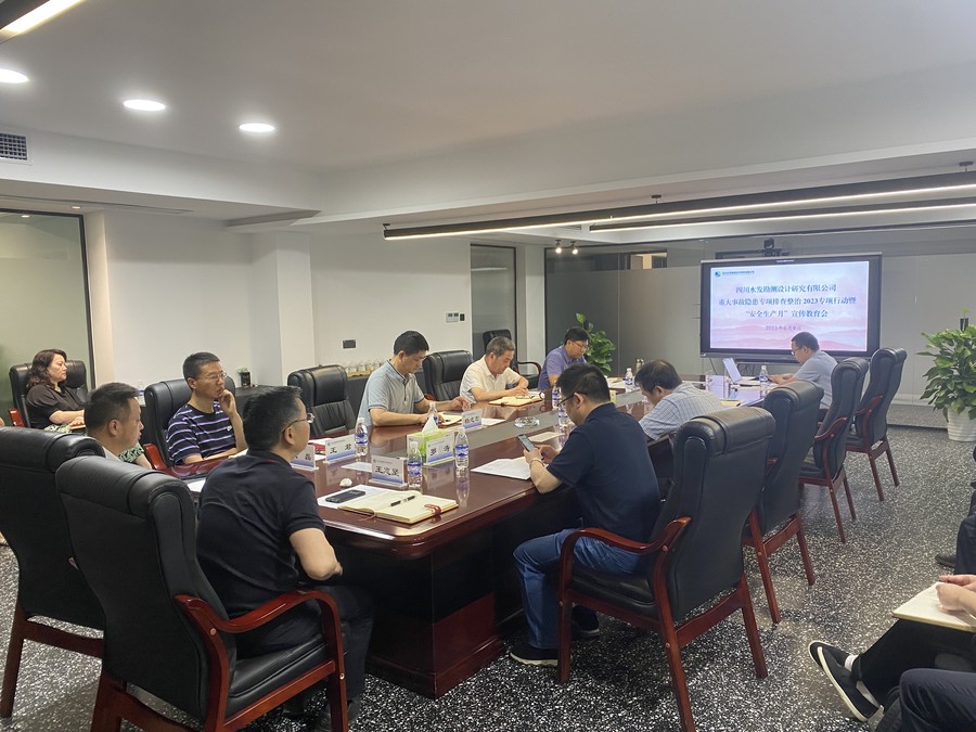 會議解讀了《四川水發(fā)勘測設(shè)計研究有限公司重大事故隱患專項排查整治2023 實施方案》;學(xué)習(xí)了《水利工程生產(chǎn)安全重大事故隱患清單指南(2021年版)》《湖南長沙“4·29”特別重大居民自建房倒塌事故調(diào)查報告》及水利安全重點檢查事項;觀看了《生命重于泰山》和《生命之鑒——全省生產(chǎn)安全事故》等電視專題片,黨委副書記、董事、總經(jīng)理張宏代表公司在會上作出安全生產(chǎn)承諾。