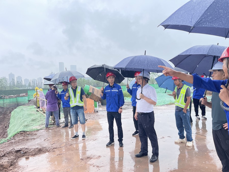 8月24日,集團黨委書記、董事長鐘杰冒雨前往四川水發(fā)科創(chuàng)中心項目施工現(xiàn)場就應對極端天氣、摸清防汛薄弱環(huán)節(jié)等防汛備汛工作開展檢查指導。集團黨委委員、工會主席唐克飛,投資公司黨委副書記、總經(jīng)理郎波陪同檢查。