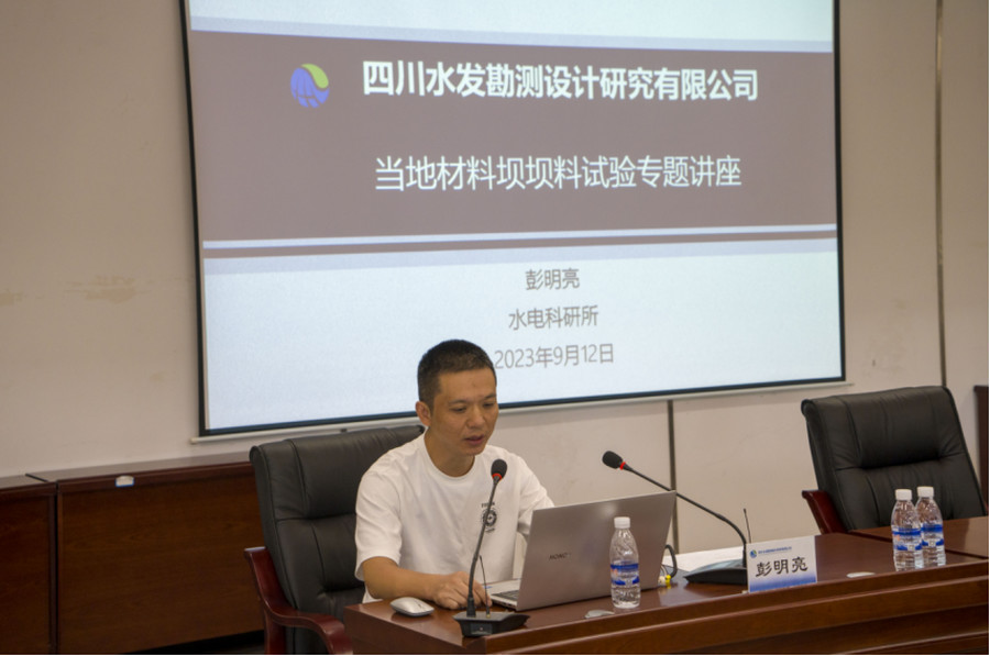 在講授中,陸恩施作“從水布埡、天生橋、紫坪鋪等工程看面板壩填筑標(biāo)準(zhǔn)和經(jīng)驗(yàn)分享”,彭明亮作“當(dāng)?shù)夭牧蠅螇瘟显囼?yàn)技術(shù)專(zhuān)題交流(粗粒土試驗(yàn)、細(xì)粒土試驗(yàn)、泥質(zhì)巖防滲料)”。兩位主講人將豐富的實(shí)踐經(jīng)驗(yàn)同理論相結(jié)合,深入淺出的將當(dāng)?shù)夭牧蠅翁钪霸囼?yàn)技術(shù)做了交流分享,干貨滿(mǎn)滿(mǎn)的課程令在場(chǎng)職工獲益匪淺。