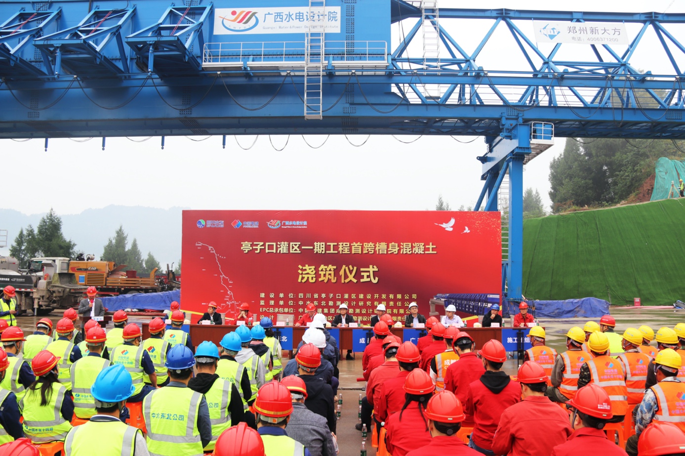 進(jìn)入四季度,亭子口灌區(qū)建設(shè)者銳意進(jìn)取、實(shí)干篤行,持續(xù)奮戰(zhàn)項(xiàng)目一線,項(xiàng)目取得重大進(jìn)展,迎來(lái)關(guān)鍵節(jié)點(diǎn)。10月25日上午,隨著第一車(chē)混凝土入倉(cāng),亭子口灌區(qū)一期工程第Ⅲ標(biāo)唐家溝渡槽啟動(dòng)首跨槽身混凝土澆筑,工程全線首臺(tái)DZ50-1800型造槽機(jī)正式始發(fā),標(biāo)志著一期工程高大渡槽施工正式邁入槽身施工工序。這一新階段的順利開(kāi)啟,對(duì)于確保高大渡槽的施工安全和質(zhì)量,加速施工進(jìn)度以及提升經(jīng)濟(jì)效益都具有重要意義。