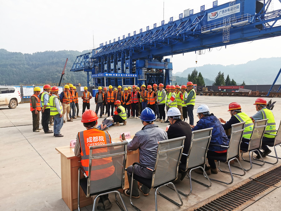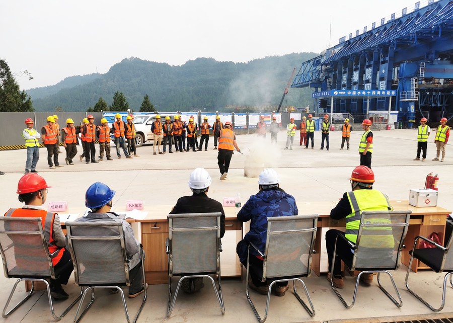 本次演練在唐家溝渡槽造槽機始發(fā)平臺進行,現(xiàn)場設置隧洞內發(fā)生火災應急疏散,講解煙霧中毒施救要點及注意事項,利用假人實操心肺復蘇術現(xiàn)場急救以及如何使用消防器材撲滅火災等三個場景。通過演練,作業(yè)人員掌握了隧洞發(fā)生火災后的正確逃生方式、了解掌握心肺復蘇術現(xiàn)場急救的方法,學會滅火器材選取和正確使用?;顒右渣c帶面,提升了參演人員檢查消除火災隱患、組織撲救火災、人員疏散逃生和自救互救能力。下一步,項目部將以消防安全月為契機,緊緊圍繞活動主題,持續(xù)深入開展專題培訓、警示教育、專項檢查等活動,構建群防群治安全網,真正統(tǒng)籌好生產和安全,為加快助推亭子口灌區(qū)一期工程建設保駕護航。