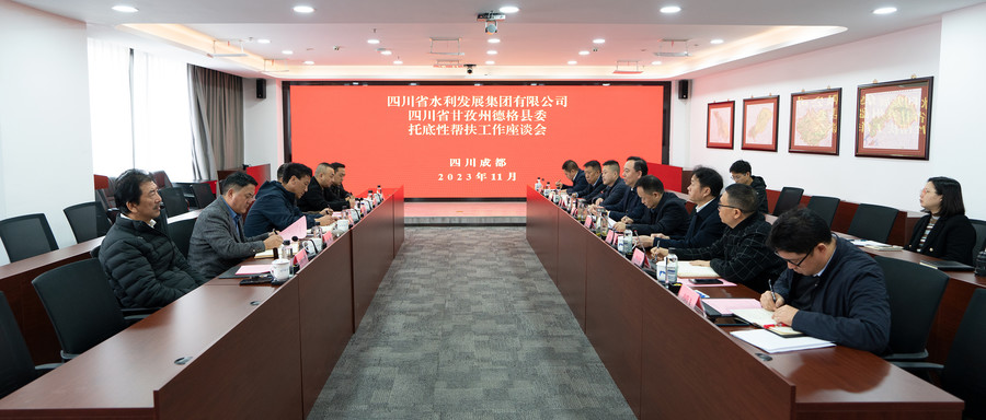 在集團總部會議室召開的支持德格縣托底性幫扶工作座談會上,集團黨委副書記、董事、副總經(jīng)理、總會計師尹曉東介紹了集團基本情況及產(chǎn)業(yè)發(fā)展優(yōu)勢。集團黨委委員、紀委書記吳軍介紹了集團開展托底性幫扶前期工作開展情況。會上,全體人員共同觀看了水發(fā)集團宣傳片。政企雙方分別就幫扶清單事項進行交流發(fā)言。