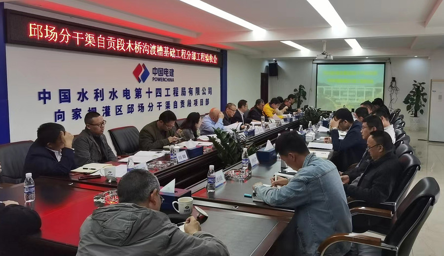 2023年11月29日,向家壩灌區(qū)北總干渠一期一步工程邱場(chǎng)分干渠自貢標(biāo)木橋溝渡槽基礎(chǔ)工程分部工程驗(yàn)收會(huì)在中國(guó)水利水電第十四工程局項(xiàng)目經(jīng)理部會(huì)議室(富順板橋)順利召開。木橋溝渡槽基礎(chǔ)工程是向家壩灌區(qū)北總干渠一期一步工程第一個(gè)組織驗(yàn)收的分部工程,特邀四川省水利廳質(zhì)量與安全中心站參會(huì)指導(dǎo),一期一步工程其余各參建施工和監(jiān)理單位參會(huì)交流觀摩。