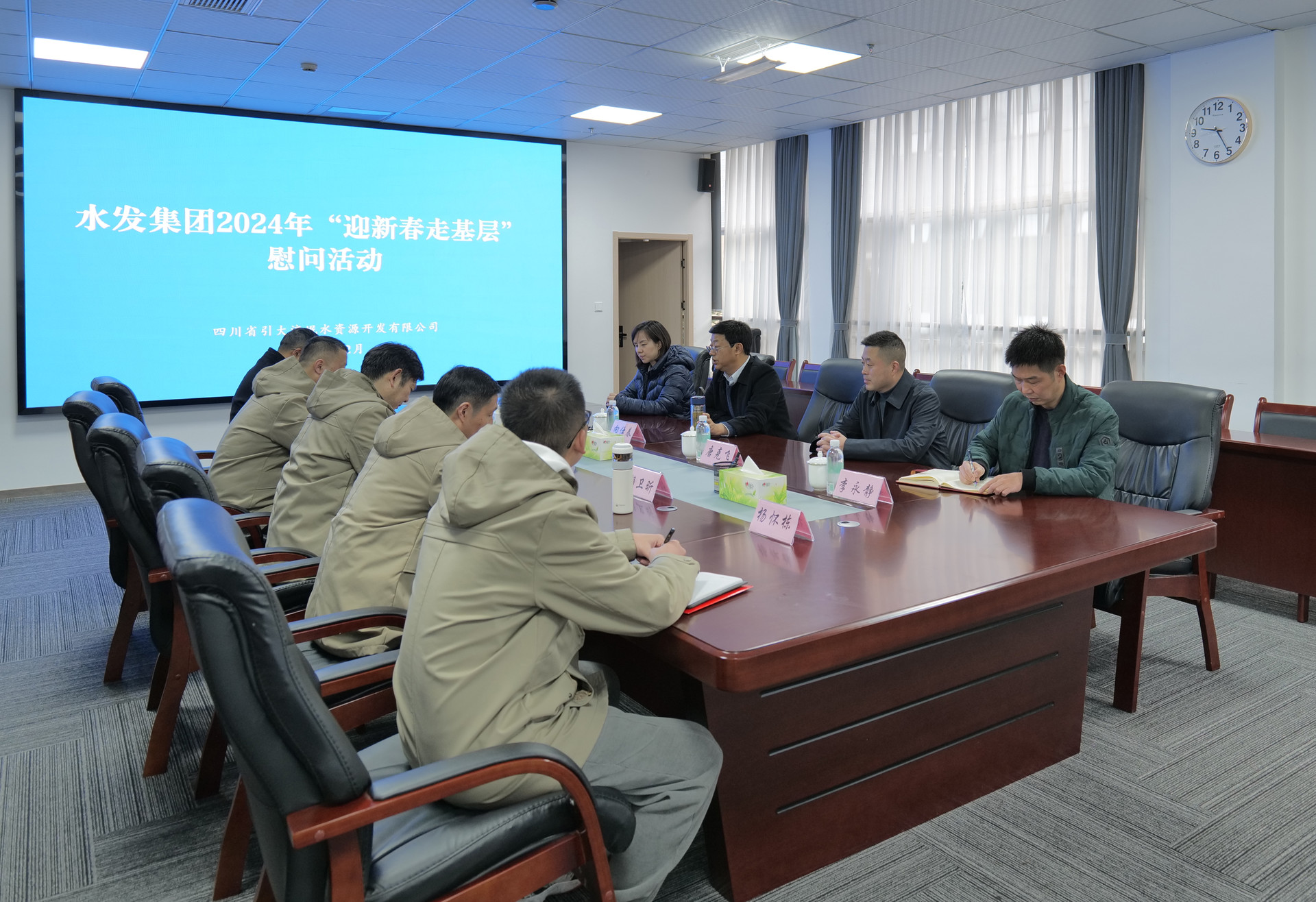 在引大濟(jì)岷?江倒虹管進(jìn)口等項(xiàng)目前線和自來(lái)水廠、機(jī)械廠等基層單位,集團(tuán)領(lǐng)導(dǎo)與相關(guān)負(fù)責(zé)人及工作人員親切交談,感謝大家在過(guò)去一年的辛勤付出,鼓勵(lì)大家堅(jiān)定信心、銳意進(jìn)取、頑強(qiáng)拼搏,為奪取千億項(xiàng)目建設(shè)年的全面勝利而戰(zhàn)斗。同時(shí),集團(tuán)領(lǐng)導(dǎo)還詳細(xì)了解春節(jié)期間值班值守、員工生活、后勤保障等情況,并囑咐大家擰緊“安全閥”,確保各項(xiàng)工作平穩(wěn)有序,要繃緊“紀(jì)律弦”,過(guò)好廉潔年。