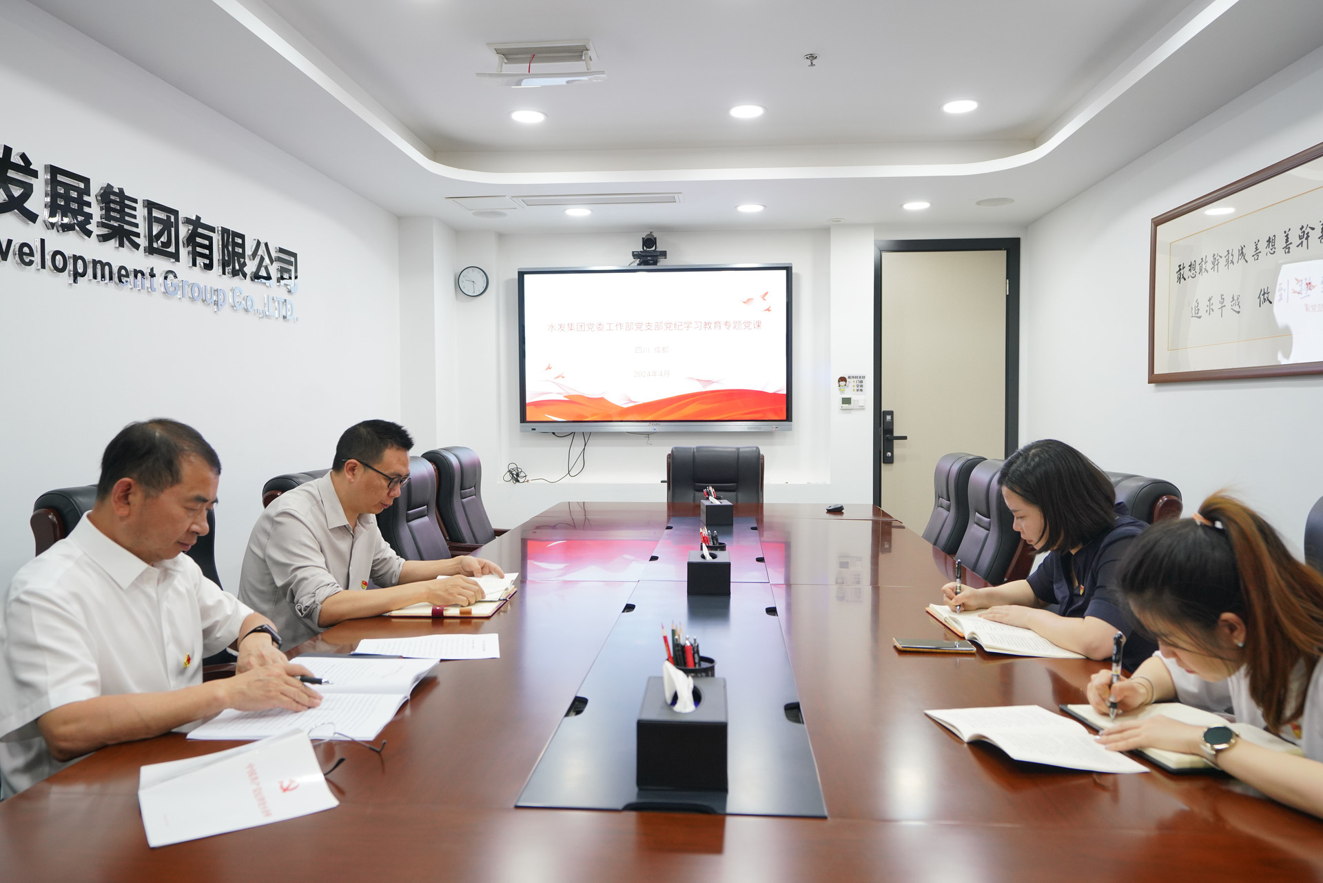 2024年4月28日,集團(tuán)總部黨委工作部黨支部在集團(tuán)一會(huì)議室召開黨紀(jì)學(xué)習(xí)教育專題黨員大會(huì)。集團(tuán)黨委書記、董事長(zhǎng)王華以普通黨員身份參加會(huì)議并作專題黨課。