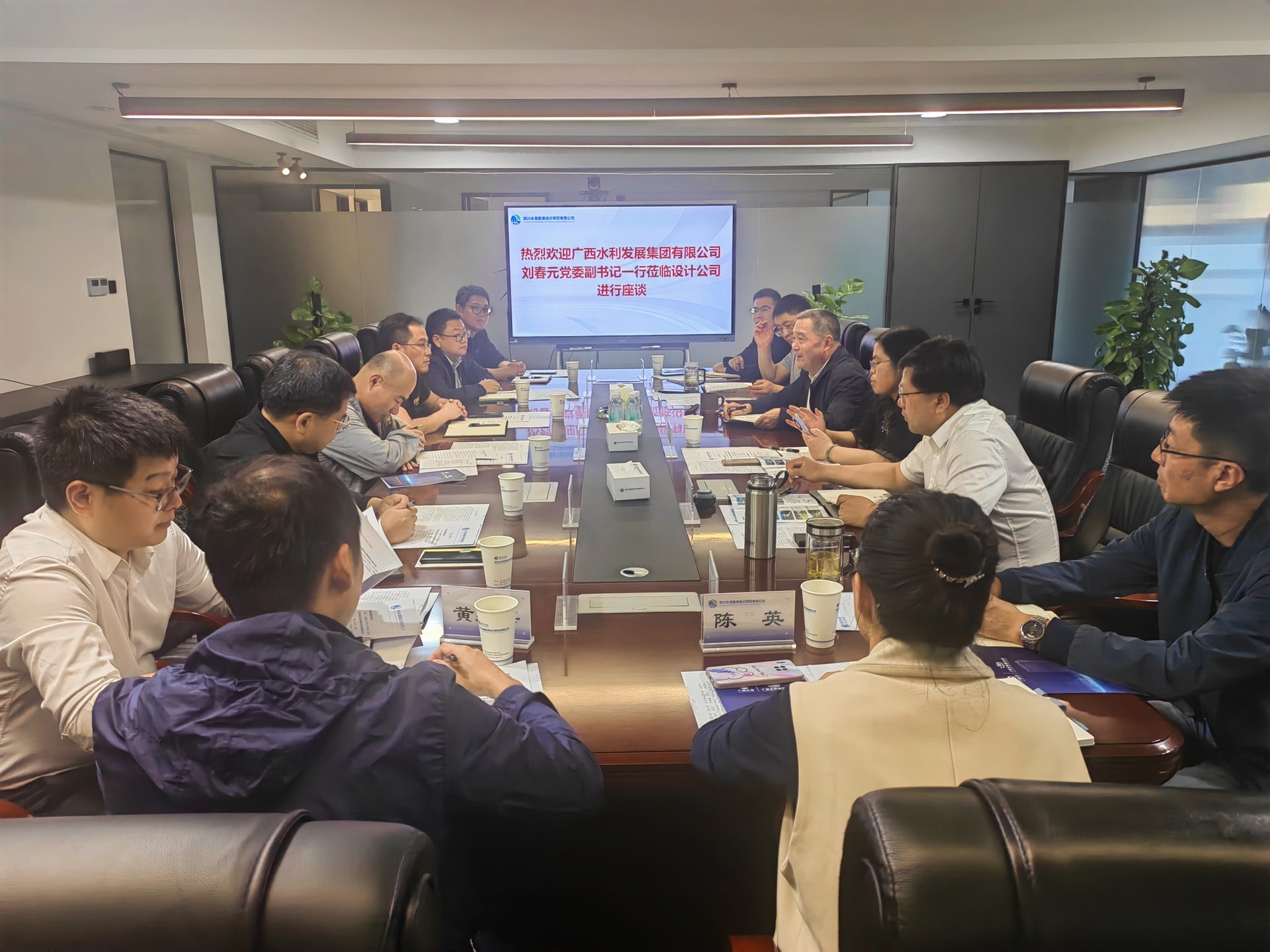 近日,廣西水利發(fā)展集團(tuán)有限公司黨委副書記、紀(jì)委書記、職工董事、工會(huì)主席劉春元一行蒞臨設(shè)計(jì)公司交流座談,廣西壯族自治區(qū)水利電力勘測(cè)設(shè)計(jì)研究院有限責(zé)任公司黨委書記、董事長(zhǎng)、總經(jīng)理唐崗,黨委副書記、職工董事、工會(huì)主席歐輝明以及有關(guān)部門、分院負(fù)責(zé)人陪同參加。