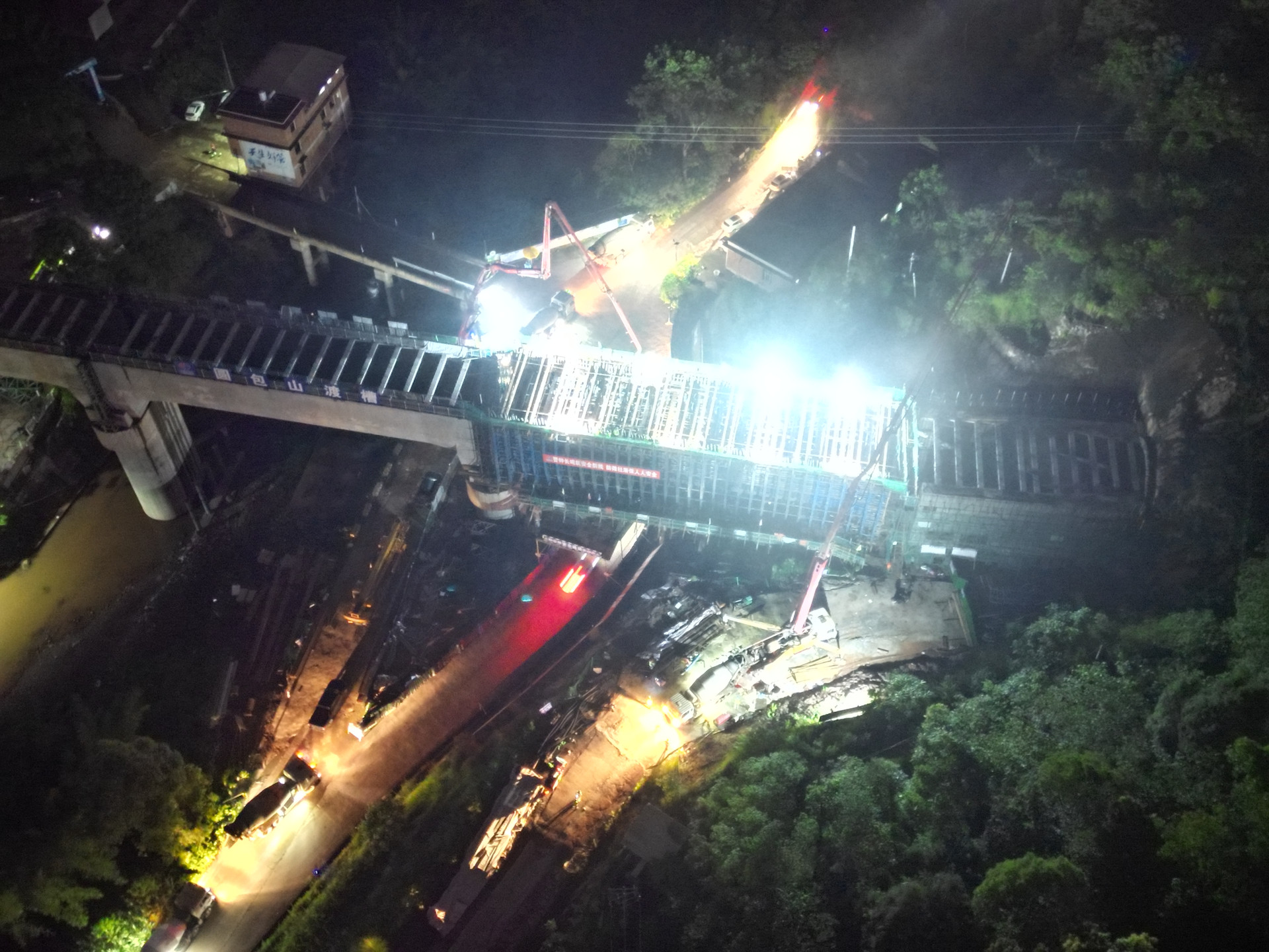 圓包山渡槽夜間加緊施工