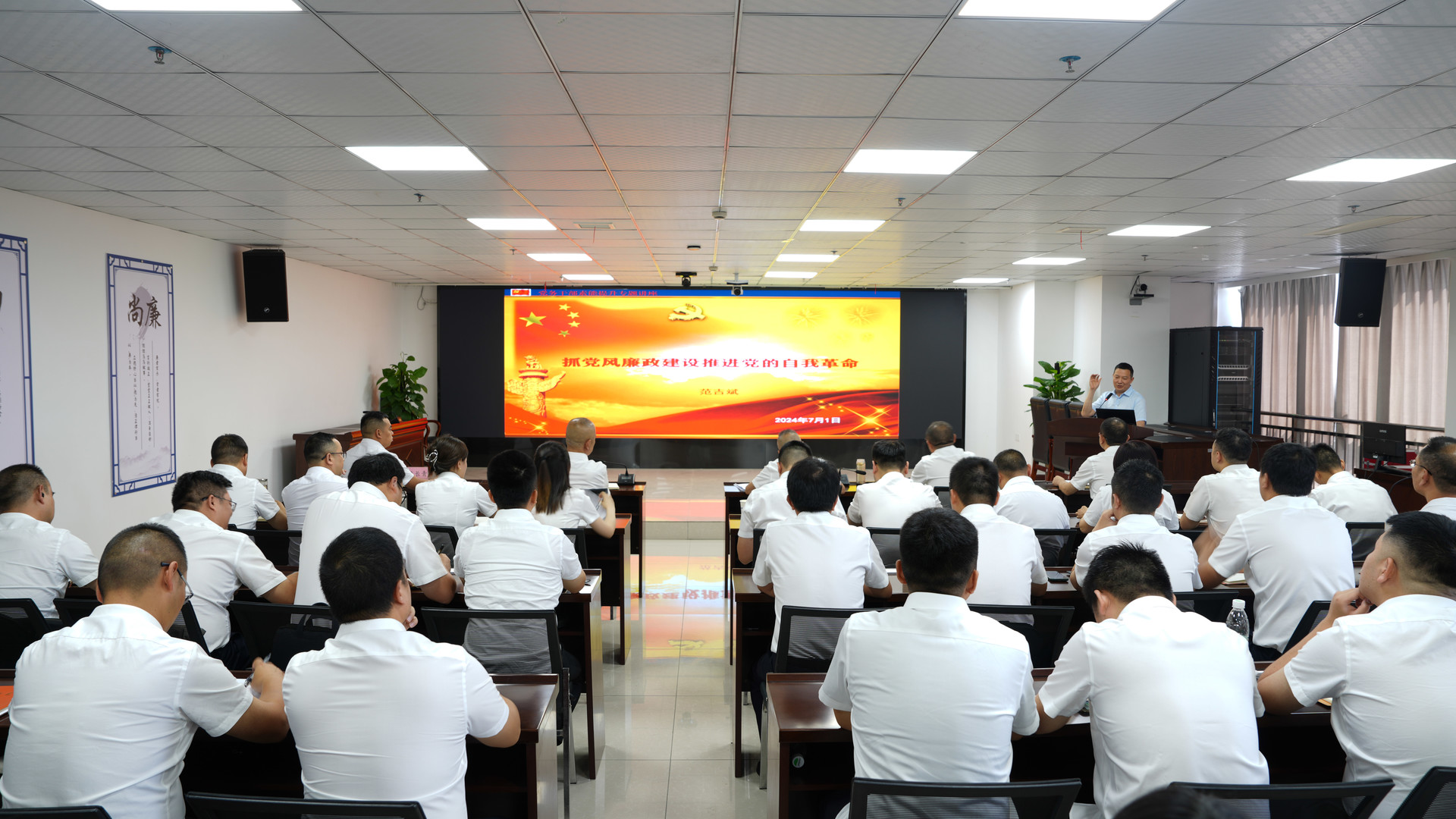 廖建強在總結(jié)講話中代表公司黨委向全體黨員致以崇高敬意和親切問候,并要求:一要堅定理想信念,做政治忠誠的“擁護者”。要把對黨忠誠作為最高政治原則和根本政治規(guī)矩,不斷增強“四個意識”、堅定“四個自信”、做到“兩個維護”,始終在政治立場、政治方向、政治原則、政治道路上同黨中央保持高度一致。二要堅定奮斗決心,做實干爭先的“排頭兵”。大力發(fā)揚“三敢三善”精神,樹立“追求卓越、做到極致”境界,緊盯水利科技高精尖和骨干水網(wǎng)建設(shè)需要,在勤學(xué)中精進業(yè)務(wù)、在思考中突破創(chuàng)新、在實踐中錘煉本領(lǐng)。三要堅守紀律底線,做廉潔自律的“明白人”。必須樹立強烈的紀律意識,自覺將紀律規(guī)矩挺在前面,做到心有所畏、言有所戒、行有所止。四要堅持常抓不懈,鞏固深化黨紀學(xué)習(xí)教育成果。開展黨紀學(xué)習(xí)教育,必須注重融入日常、學(xué)用結(jié)合,通過聚焦重點學(xué)、分層分類學(xué)、警示教育學(xué)、結(jié)合實際學(xué),推動黨紀學(xué)習(xí)教育走深走實、見行見效。