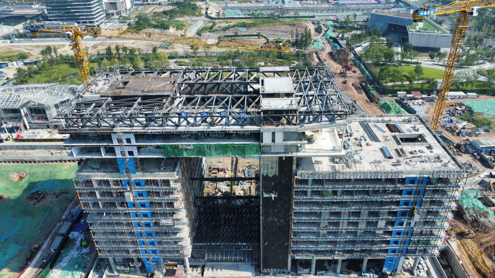 建設(shè)過程中,參建各方以高標(biāo)準(zhǔn)、高質(zhì)量的工作要求不斷進(jìn)行自我加壓,向打造精品工程和標(biāo)桿工程不懈努力,克服了施工難度大、工期緊、任務(wù)重等諸多挑戰(zhàn),在施工管理中緊盯重型鋼結(jié)構(gòu)吊裝、高支模等超危大及危大工程的施工管理,嚴(yán)格落實(shí)參建各方主體責(zé)任,確保施工安全、建設(shè)質(zhì)量、建設(shè)工期等嚴(yán)格按照標(biāo)準(zhǔn)要求落實(shí)落地。截止目前,該項(xiàng)目已申報(bào)并獲批成都市2024年度重點(diǎn)項(xiàng)目,并正在進(jìn)行省、市兩級優(yōu)質(zhì)結(jié)構(gòu)工程的申報(bào)。