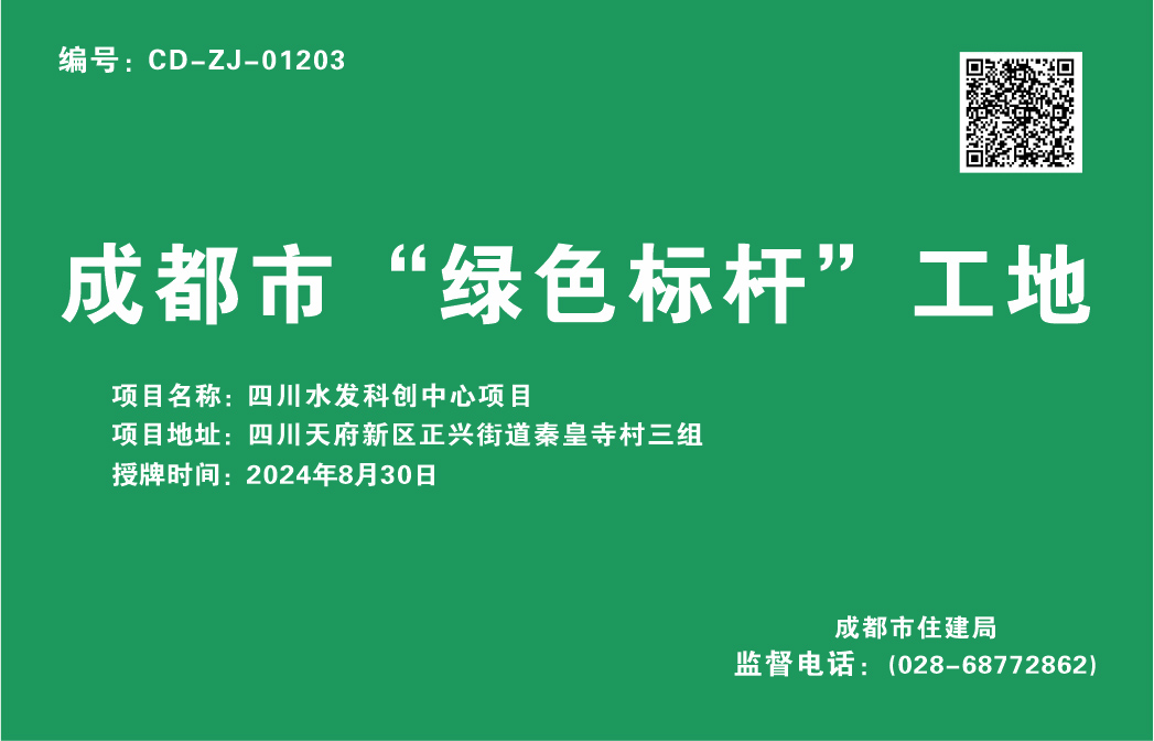 近日,四川水發(fā)科創(chuàng)中心項目正式取得由成都市住建局頒發(fā)的成都市“綠色標桿”工地稱號,這是該項目獲批成都市2024年度重點項目之后榮獲的又一殊榮。