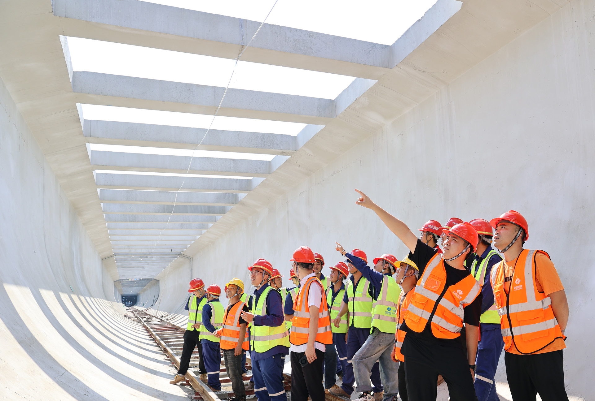 觀摩人員先后來到葛麻山隧洞襯砌混凝土施工樣板段、唐家溝渡槽第三跨槽身樣板段?,F(xiàn)場(chǎng)負(fù)責(zé)人介紹,葛麻山隧洞總長(zhǎng)1477.6米,隧洞為內(nèi)徑6.3米的圓形斷面。在施工過程中,項(xiàng)目部嚴(yán)格按照施工方案和操作規(guī)范落實(shí)標(biāo)準(zhǔn)化、規(guī)范化工序,各項(xiàng)過程管控做到“精、準(zhǔn)、嚴(yán)、細(xì)”,有效確保了襯砌工程的整體質(zhì)量。項(xiàng)目質(zhì)量負(fù)責(zé)人表示,針對(duì)唐家溝渡槽槽身施工的技術(shù)難題,項(xiàng)目部充分利用BIM建模與三維動(dòng)畫制作等先進(jìn)技術(shù)手段,對(duì)U型槽身特點(diǎn)、難點(diǎn)進(jìn)行深入剖析與精準(zhǔn)模擬研究,提前識(shí)別并規(guī)避施工中的技術(shù)質(zhì)量風(fēng)險(xiǎn)。